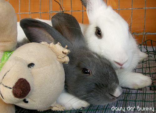 Meet my partner in cage now, Smokey the bunny! She is just a few months younger than me.. I can't believe Mommy forgot to upload her pics here when they first got her last year! Tsk tsk Mommy!